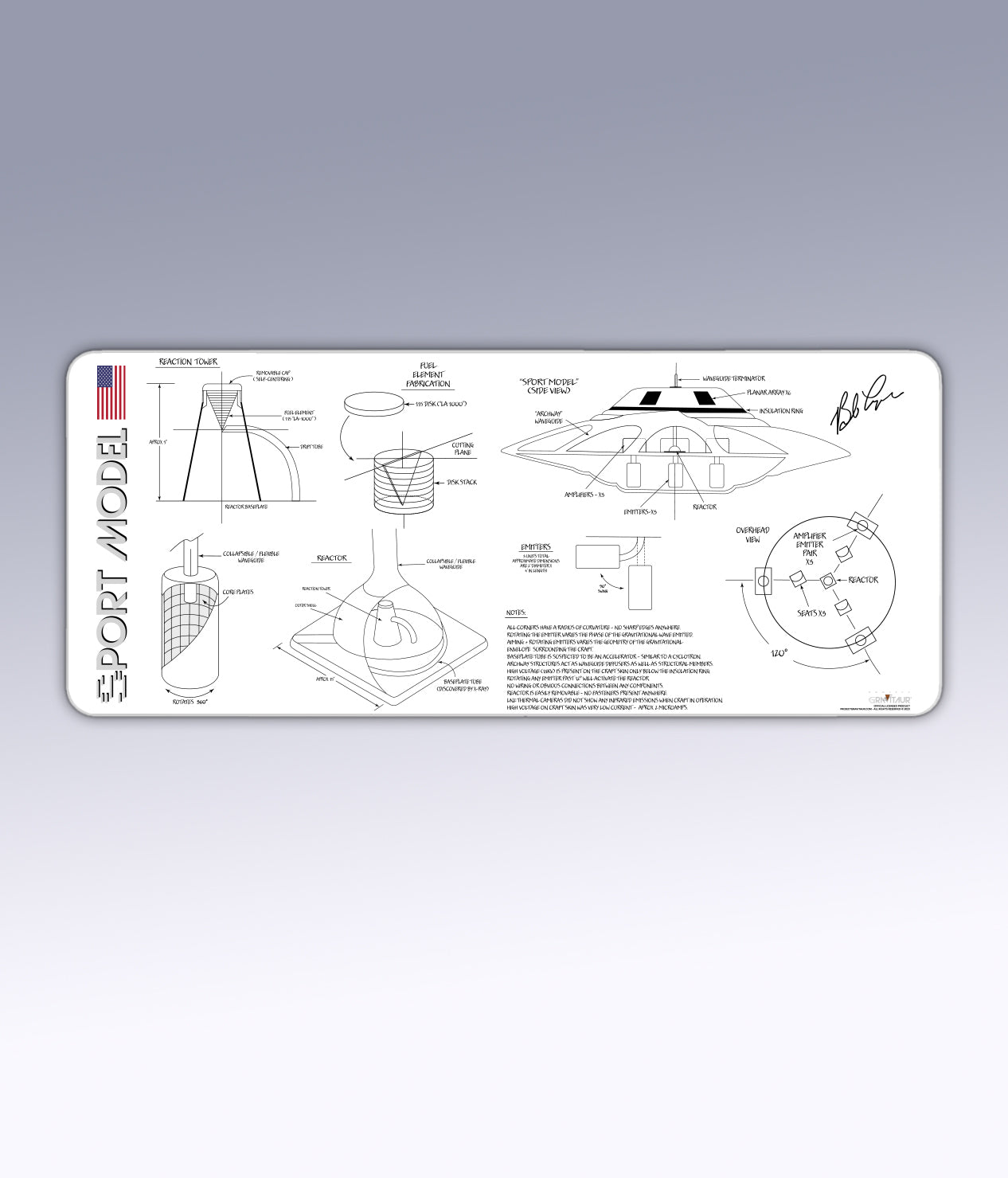 Desktop/Gamer Mat printed with the Bob Lazar Sport Model Sketch 36" x 16" (3mm thickness)