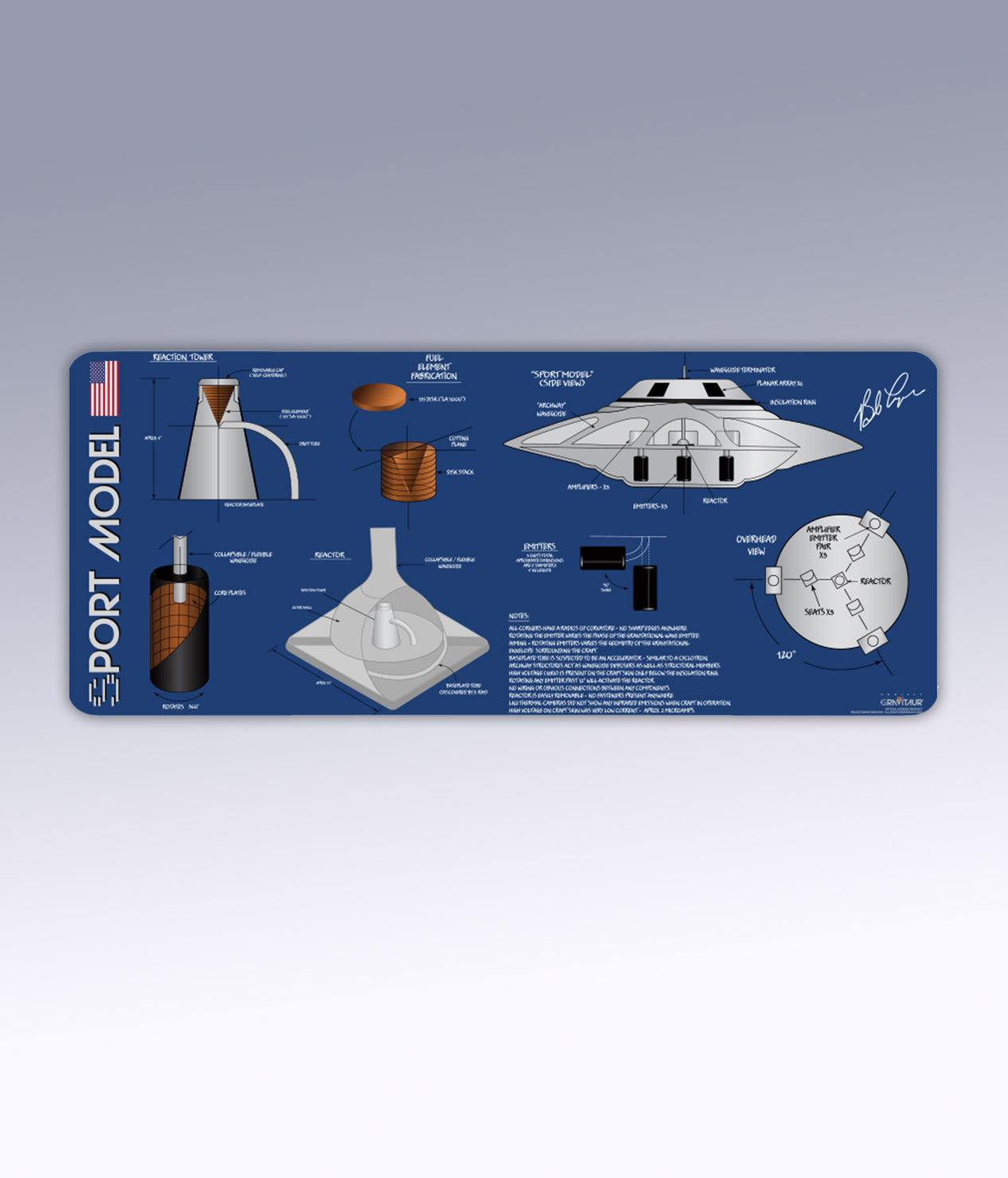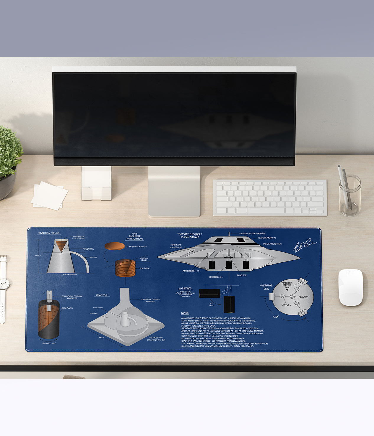 Desktop/Gamer Mat printed with the Bob Lazar Sport Model Sketch 36" x 16" (3mm thickness)